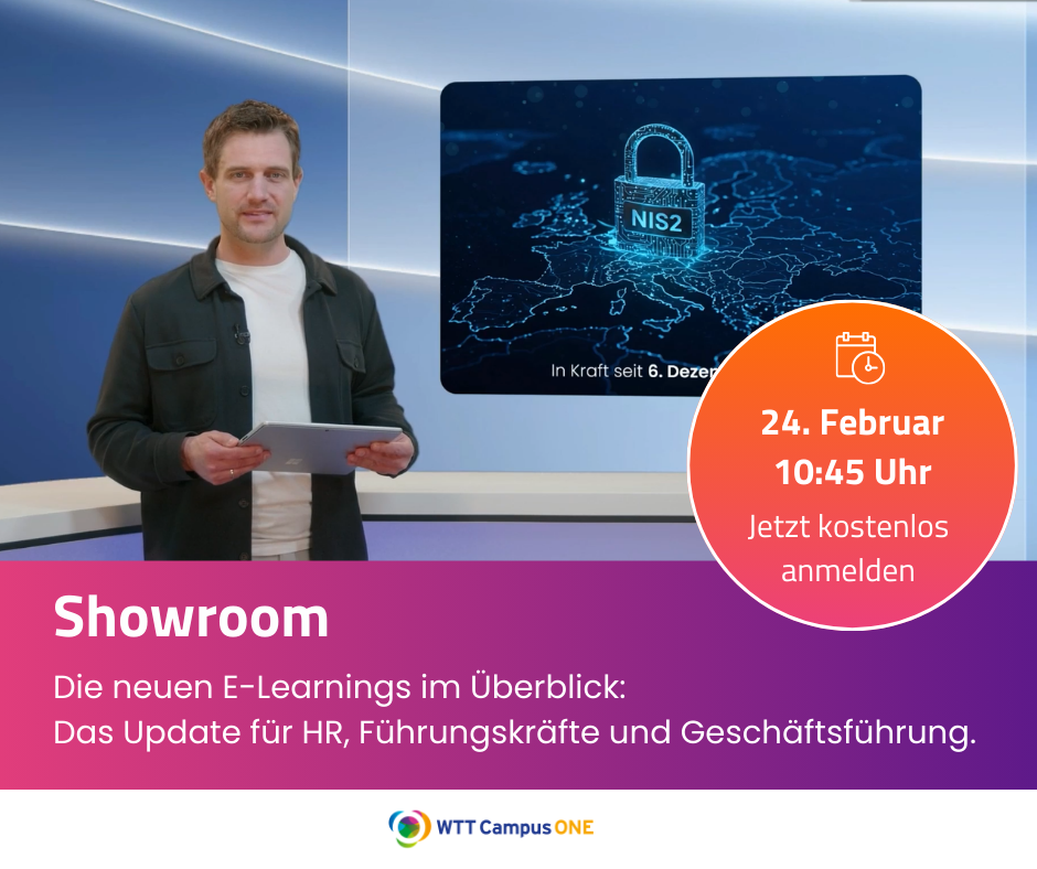 Unsere neuen Schulungen unterstützen Führungskräfte und Mitarbeiter aller Branchen dabei, gesetzlichen Veränderungen zu folgen, rechtssicher zu handeln und effizient zu arbeiten. Wie Sie die Schulungen einsetzen und für wen sie in Ihrer Belegschaft geeignet sind, erfahren Sie in unserer Showroom-Präsentation.